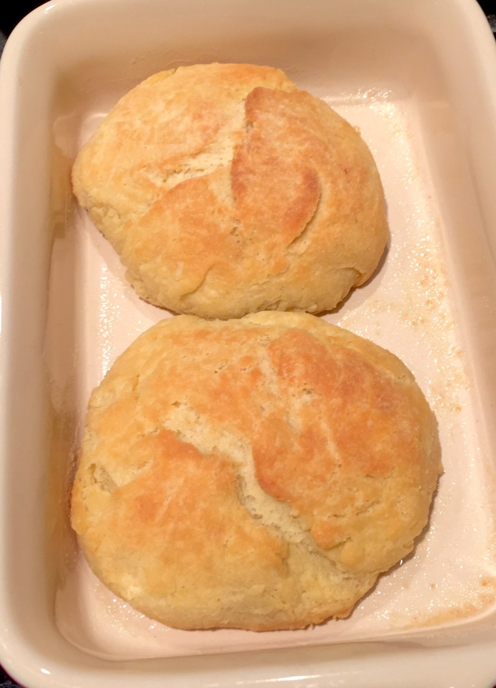 Bake the biscuits for 14 to 18 minutes, until they’re golden brown. Remove them from the oven and let them rest for 10 minutes or so before serving; they’re best enjoyed slightly warm. **** I baked the biscuits for 15 minutes then turned the broiler on and watched as they turned golden then let the rest 10 minutes as suggested on the King Arthur link.