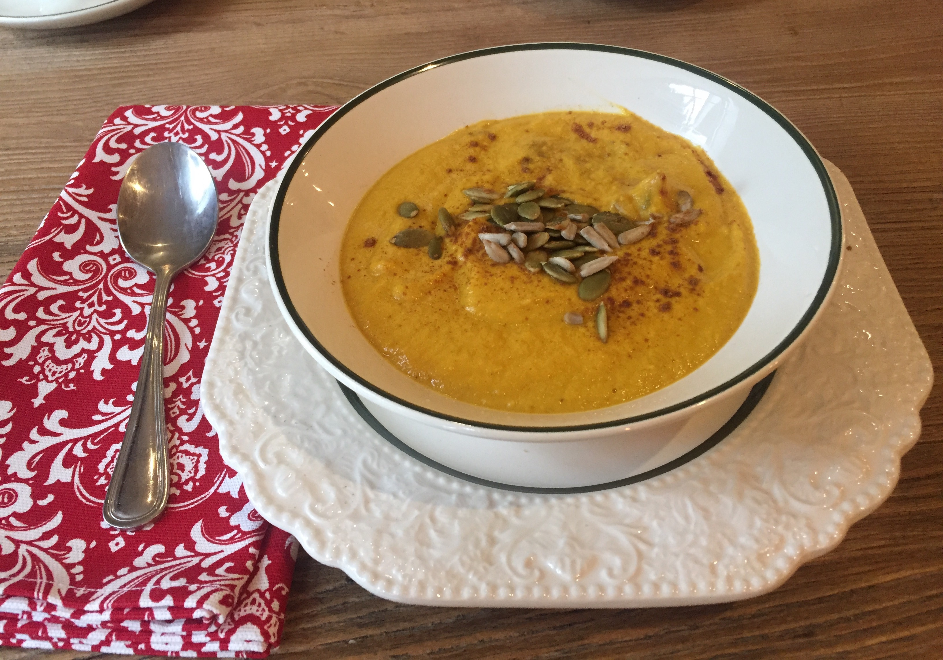 Garnish with pumpkin seeds, sunflower seeds, and cinnamon.
