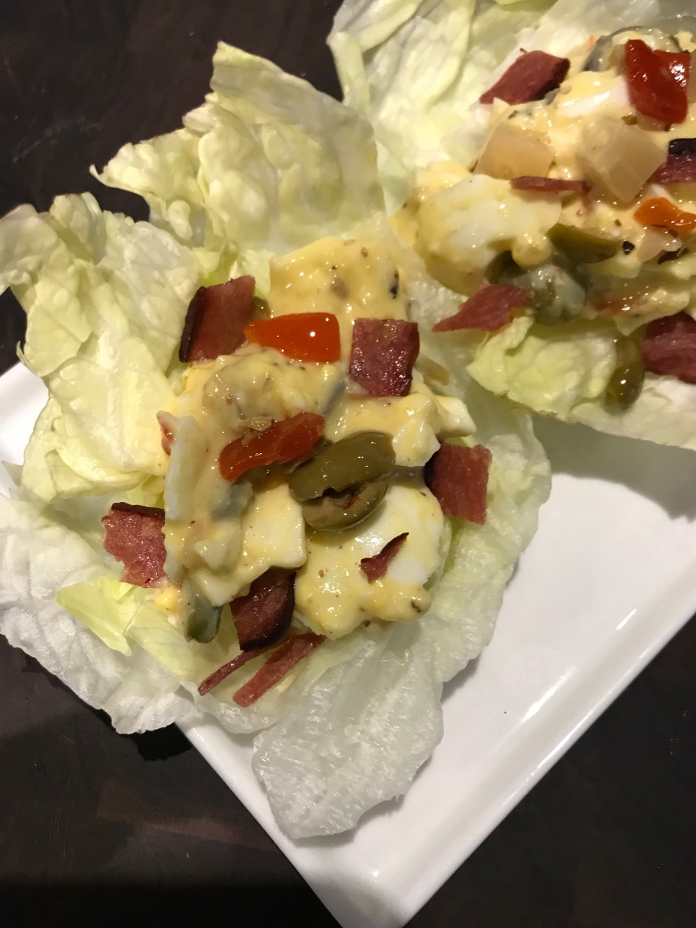 Yes, Egg & Olive is Keto Friendly and there is no real variation in recipe but rather than bread or crackers it is served in a lettuce cup. I like the crunch and stability of iceberg lettuce for this recipe instead of my usual green leaf lettuce. I also think the olive salad makes this recipe so make sure to use a really good olive salad.
