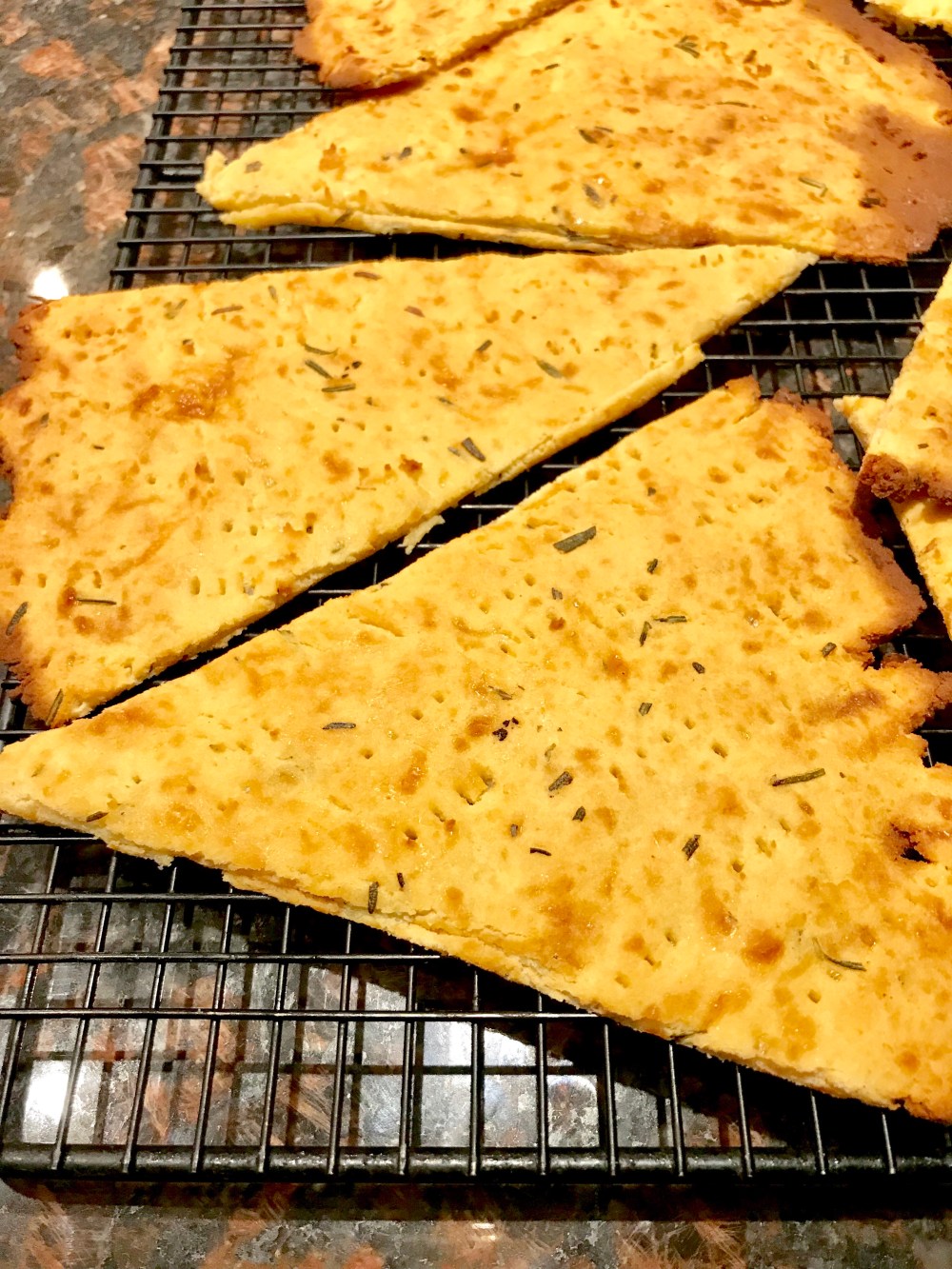 Melt mozzarella, ghee, and cream cheese over low heat. When melted put it in a mixing bowl or stand mixer then add eggs, flour, rosemary, and salt. Mix well.