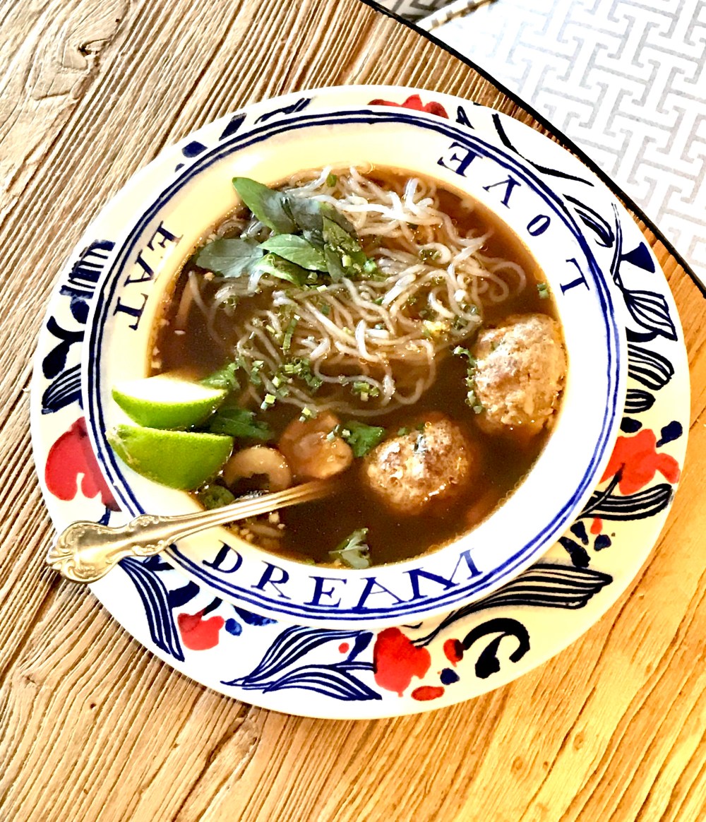 I was first introduced to Pho 🍲 on Anthony Bourdain’s Parts Unknown. We loved watching on Sunday nights to see where Anthony would be and more importantly what he would be eating. On a particular episode Anthony was in Vietnam eating Pho. I was on a mission. I went to the Vietnamese grocery in Memphis, ordered bowls from Anthropology, and started testing out recipes. I especially like using meatballs over steak and pork. This is a super easy recipe that can be tailored to your preferences and what your family will eat.