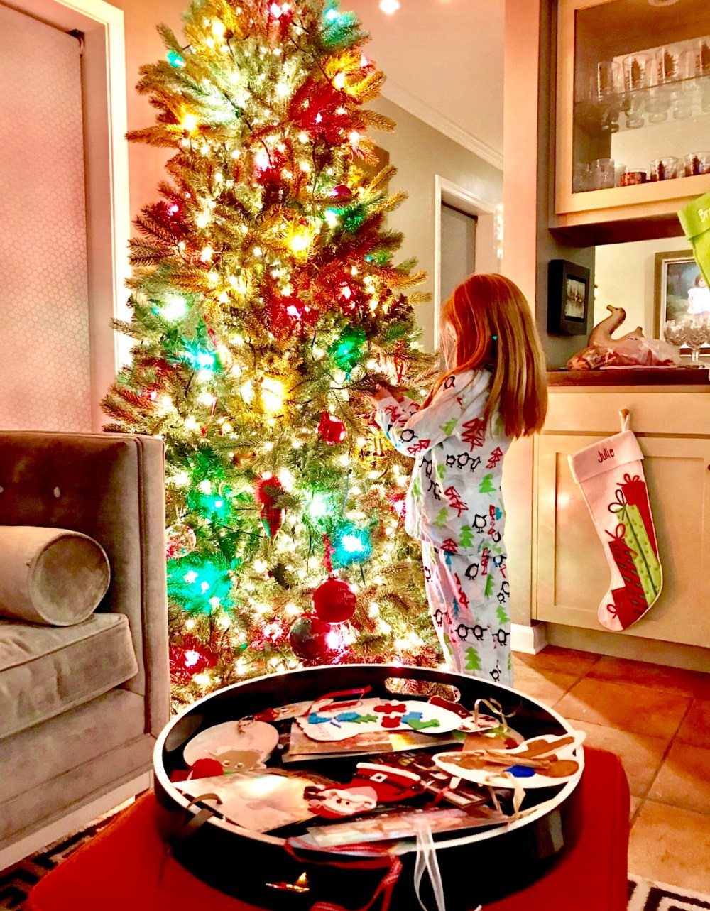 Christmas Eve we have brunch and church. Before bed we leave Holly by the tree and put homemade sugar cookies and egg nog for Santa.
