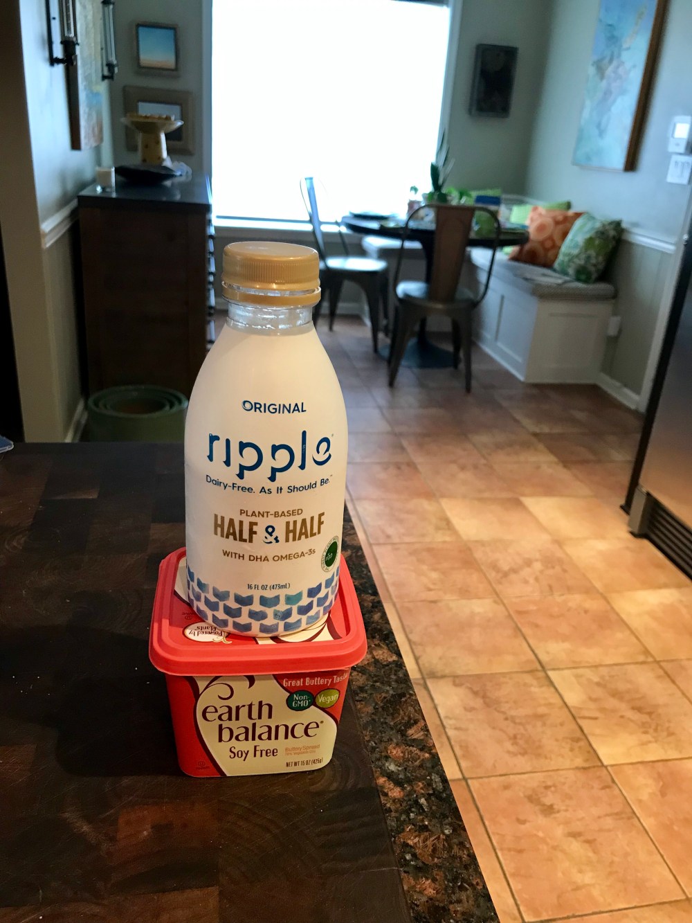 I used earth balance soy free in place of the ghee and ripple half & half in place of the goat yogurt. For the cheese I used daiya’s New American Style slices. About ten years ago we tried daiya cheeses and did not like them. We did however, give daiya a second chance because Shelton likes their Mac & Cheese. We were pleasantly surprised and it melted under the broiler and tasted pretty close to American cheese (from what I can remember 😬).