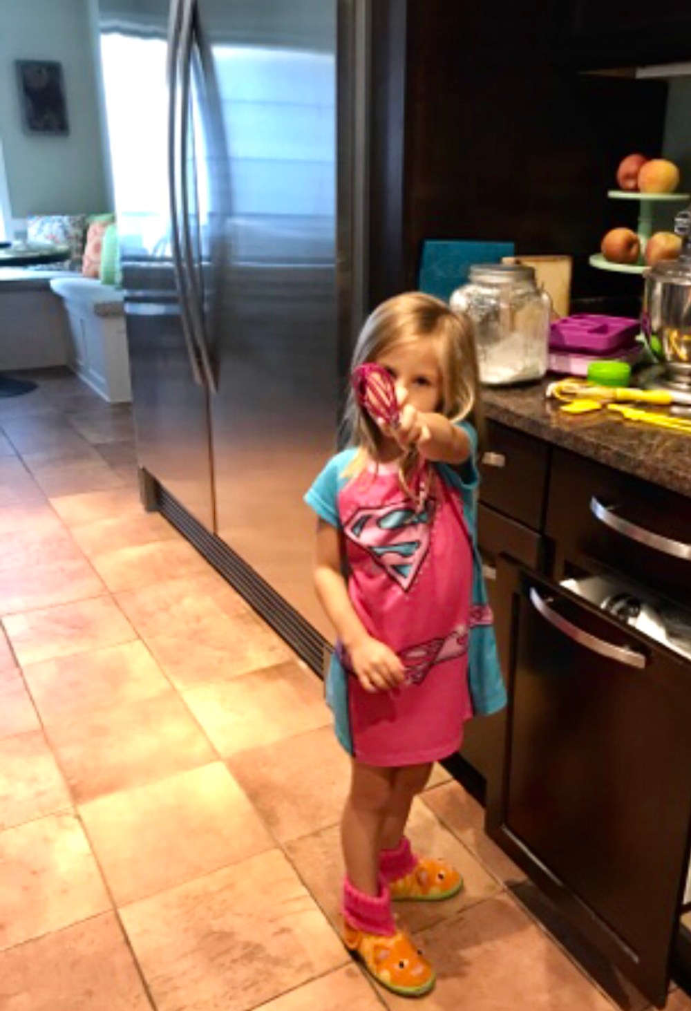 Shelton feeling very please to get the whole chocolate chip cookie in her mouth 🤣