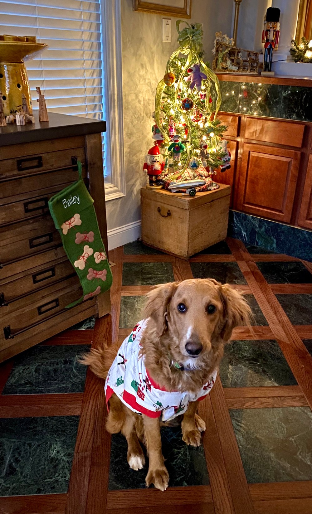 Christmas jommies are a tradition we started when Shelton was little. The girls, Scott, and I got all matching flannel Christmas ones. Last year we added Bailey to this tradition. She loves it too…jk… I have no idea but she doesn’t eat them and her demeanor remains cheerful.