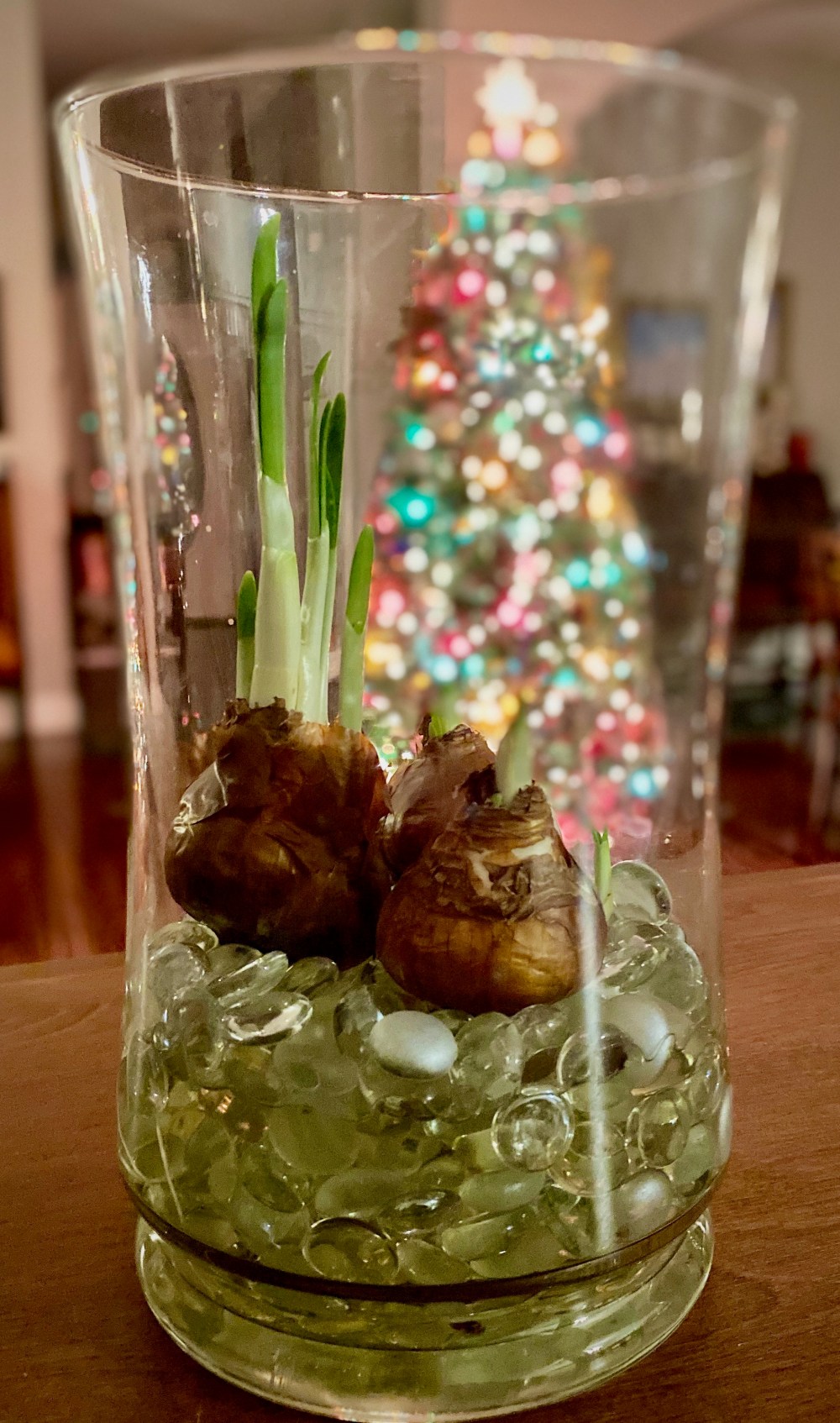 A tradition we’ve done for over 20 years started when Braxton was little. Her Sunday school teacher always gave a paper white Narcissus in a clear plastic cup with glass beads with a note: