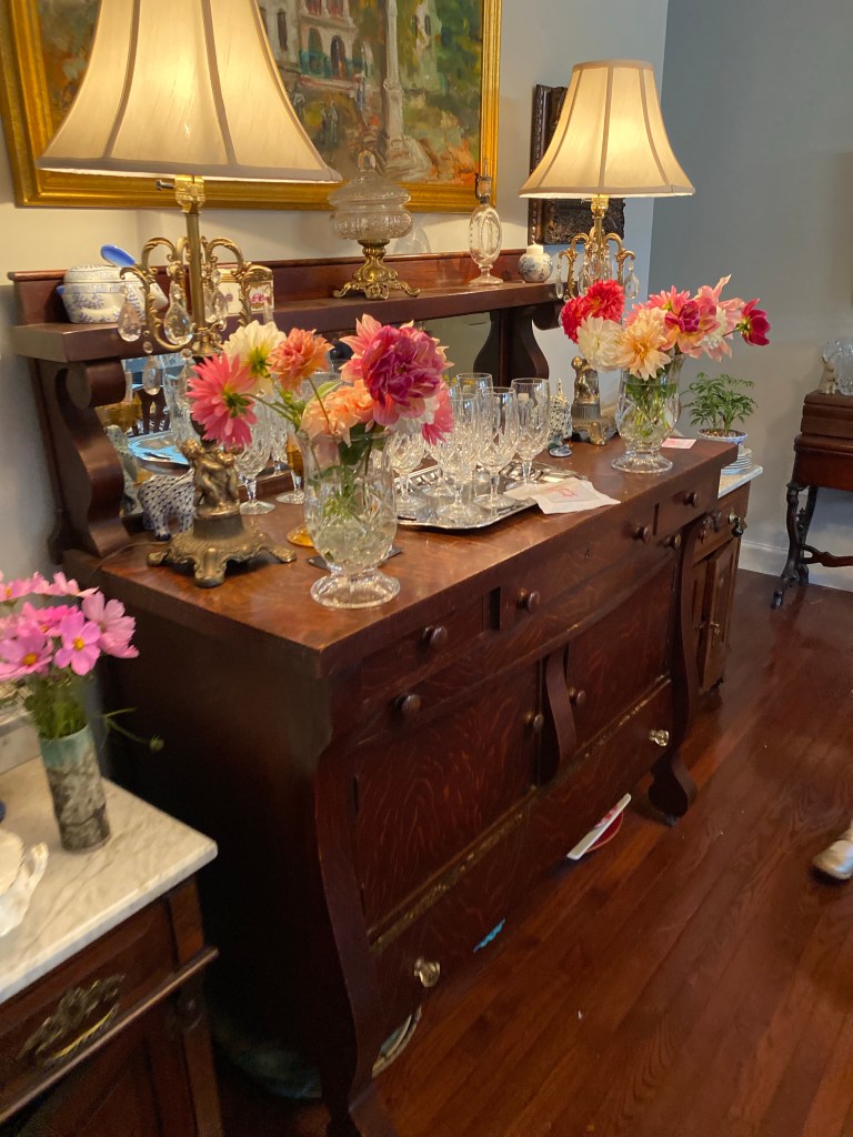 The dishes are an absolute miracle. Shelton’s godmother was cleaning her parents home and came across a set of wedding china. Her mother no longer wanted them so she called and asked if we might want them for Shelton. She described them as simple with a silver band. Sight unseen I said yes! Later that week Shelton’s godmother called back and said she would send pictures of the china. To her amazement when she looked at the back of the plate it was written: Theodore Haviland Shelton