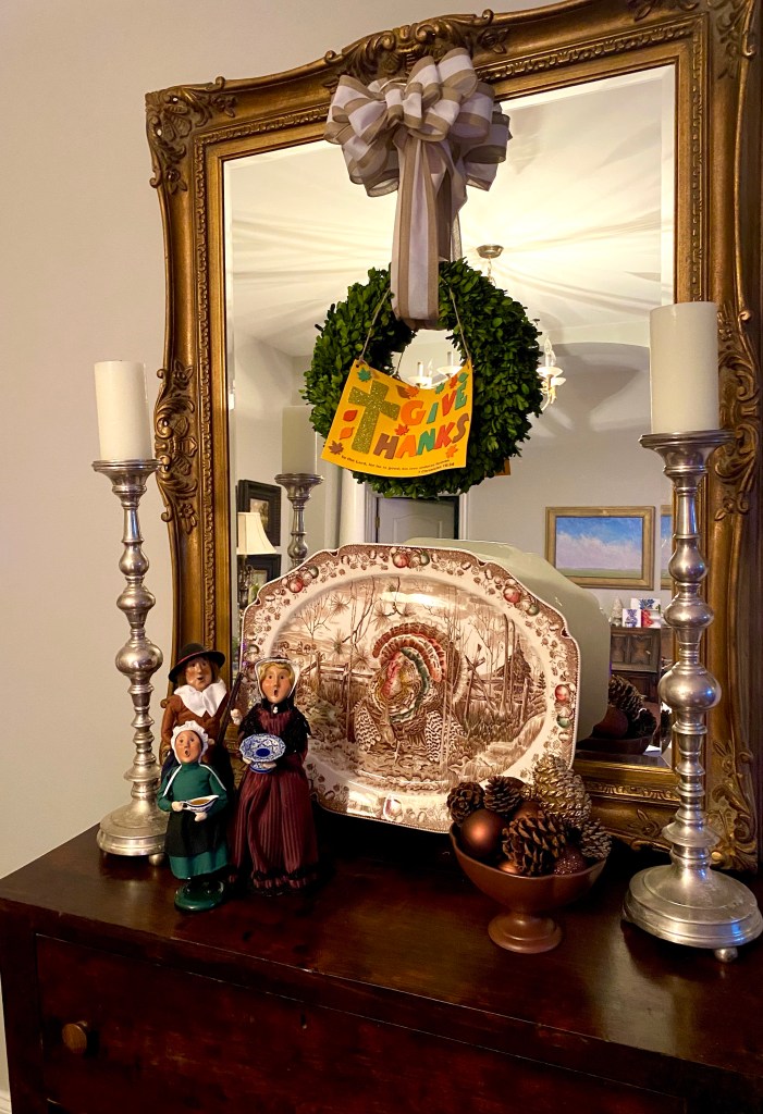 I love Thanksgiving and Christmas. For me it’s not one or the other it is both. I’m slowly decorating for Christmas and keeping Thanksgiving up too! My goal is to have everything done by Thanksgiving. After Thanksgiving dinner I can swap the table to Christmas and enjoy every moment without stressing out trying to get it all done. So far our tables are fall/ Thanksgiving.
