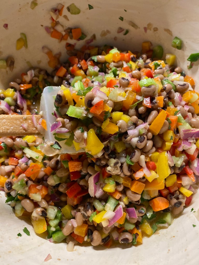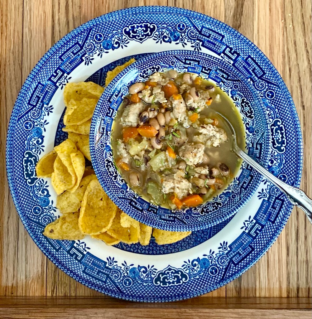 One bag of dried black eyed peas soaked and cooked in the crockpot two ways. Half of the peas are for soup and the other for dip. Here are my recipes.