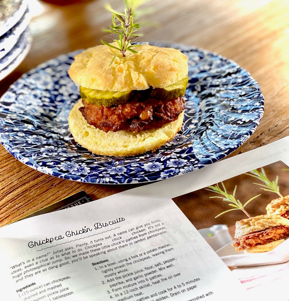 I love it when my recipe looks like the picture! I swap ingredients a lot because of food allergies and the final product doesn’t alway match the picture! I’ve always said that taste is more important than looks but it’s even better when it looks like the original recipe. This recipe is from Vegetarian Cooking for Two by the Memphis couple Justin Fox Burks & Amy Lawrence. The first recipe I tested was Chickpea Chick’n Biscuits.